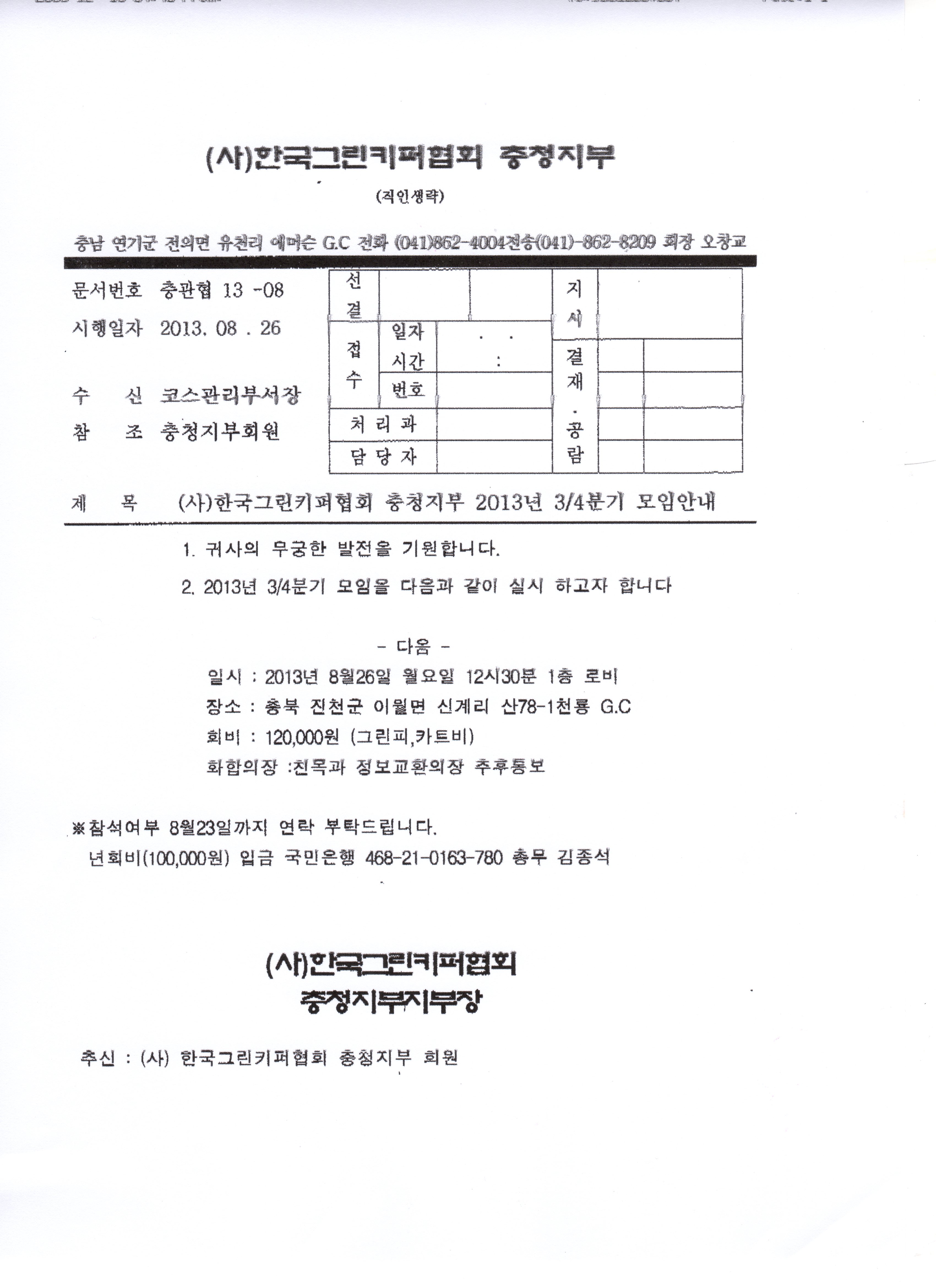| 2013년 (사) 한국그린키퍼협회 충청지부 3/4분기 모임을 첨부파일과같이 안내하오니 참고바라며 많은참석 부탁드립니다. | ||||||||||||||||||||||||||||||||||||||||||||||||||||||||||||||||||||||||||||||||||||||||||||||||||