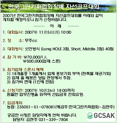 | 제목 | 한국그린키퍼협회장배 자선 골프 대회 | ||