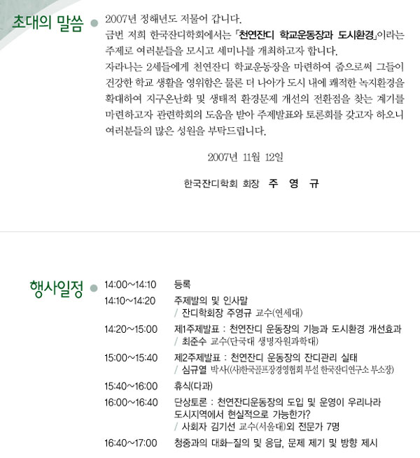 | 제목 | 2007년도 한국잔디학회 세미나 | ||